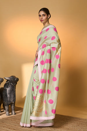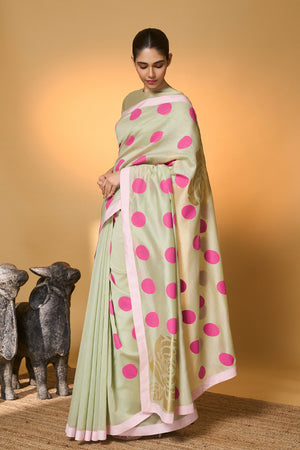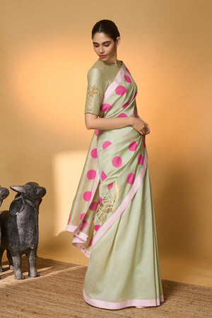 Mint Rose Blush Polka Saree