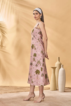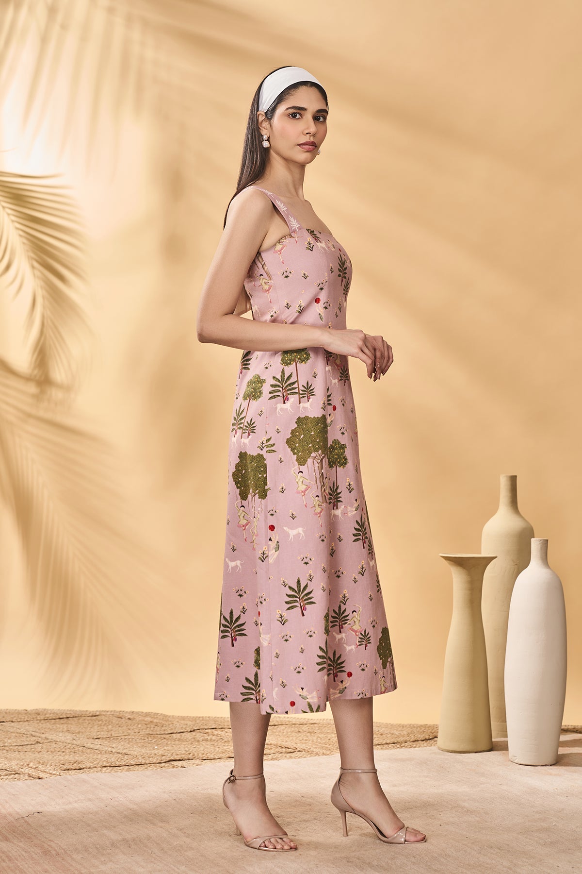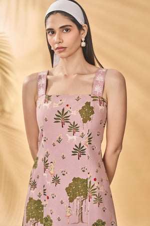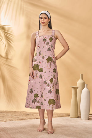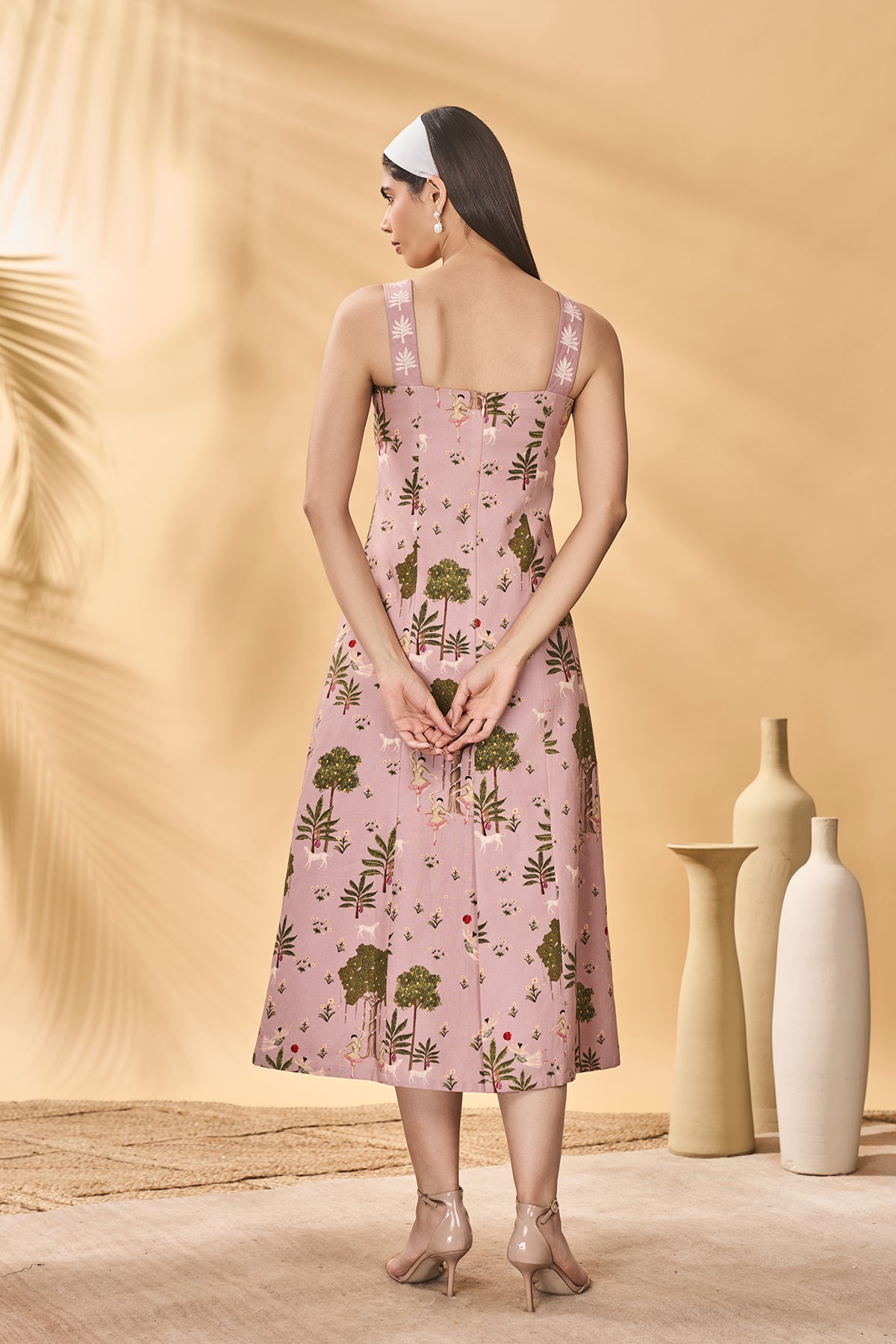 Details: Panelled midi dress | Square Neck | Embroidered strap | Centre back zipper closure