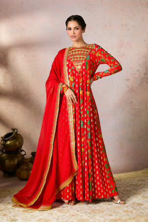 Styling: Pair the Anarkali with statement gold or antique jewelry and mojris. Accessorize it with a beautiful potli bag. Style it with our beautiful georgette dupatta draped elegantly over one shoulder for a more elevated look.
