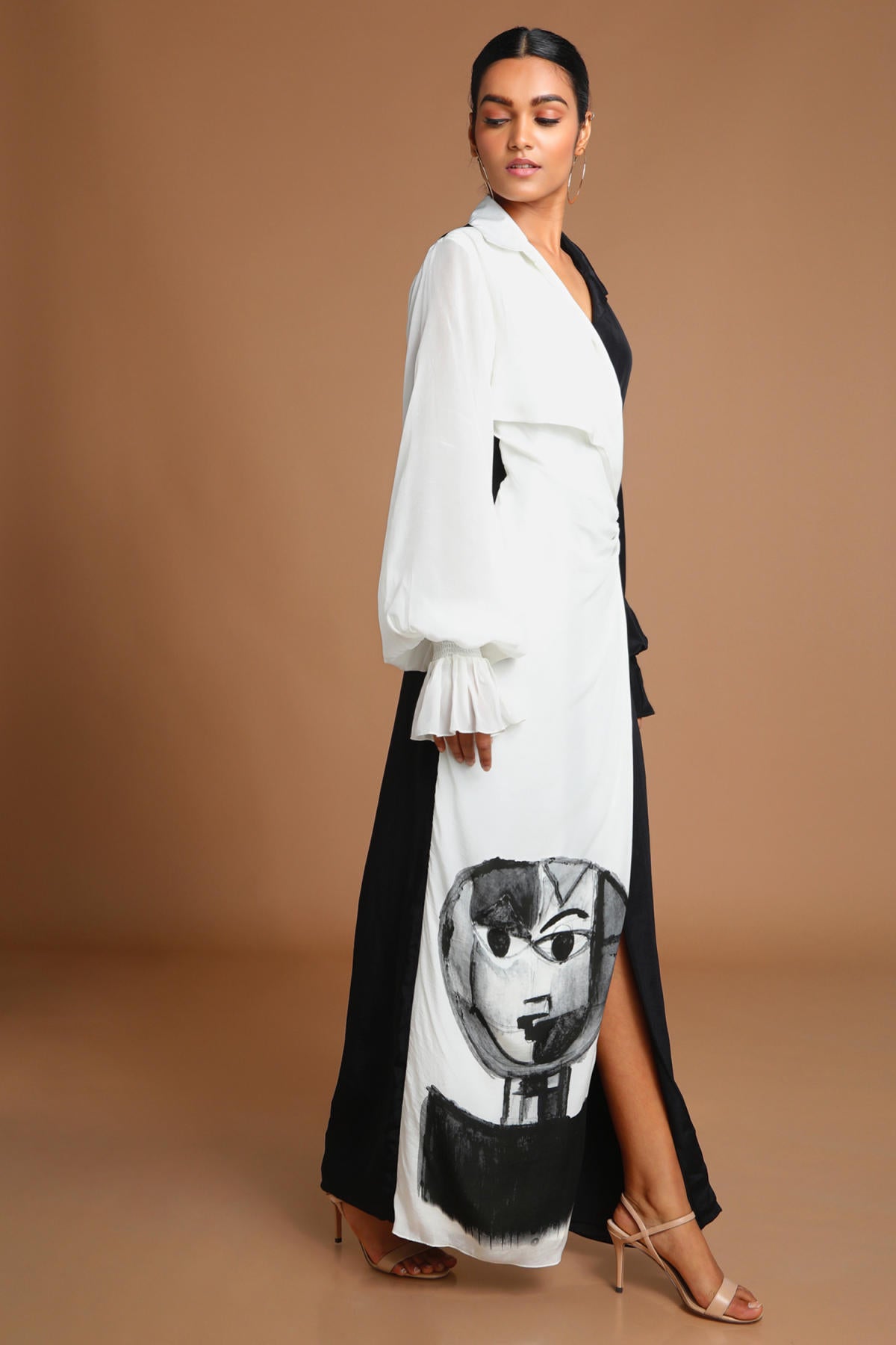 Styling: Dress Long Draped Dress up with earrings and your comfortable heels.