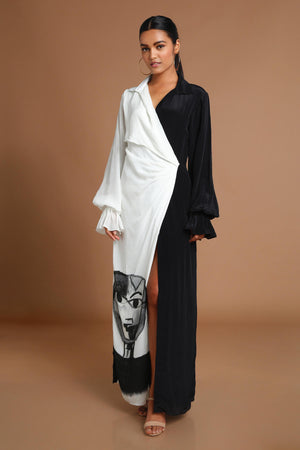 Styling: Dress Long Draped Dress up with earrings and your comfortable heels.