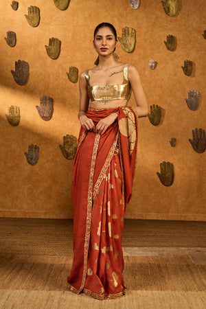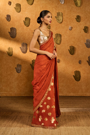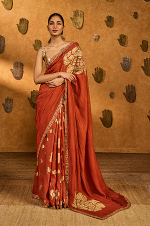 Rust Windrose Crushed Saree