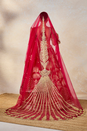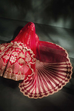 Fabric: Lehenga- Heavy Raw Silk | Blouse- Heavy Raw Silk | Dupatta- Silk Organza | Veil- Tule