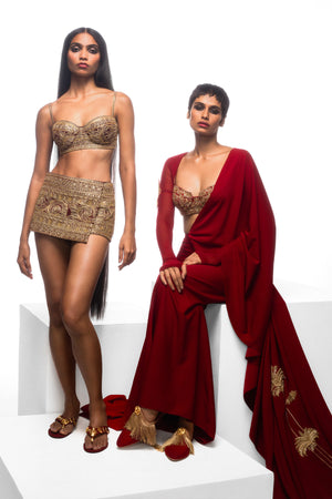 Bralette - The India bralette is densely embroidered in gold zardosi thread.
