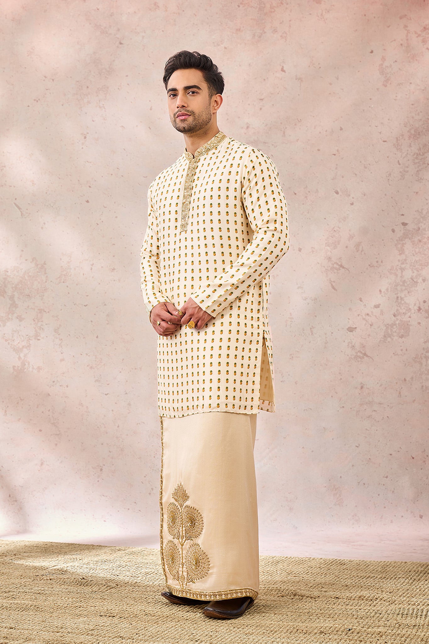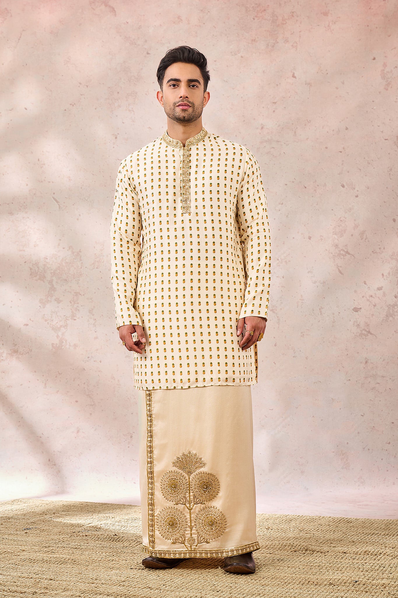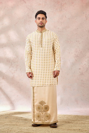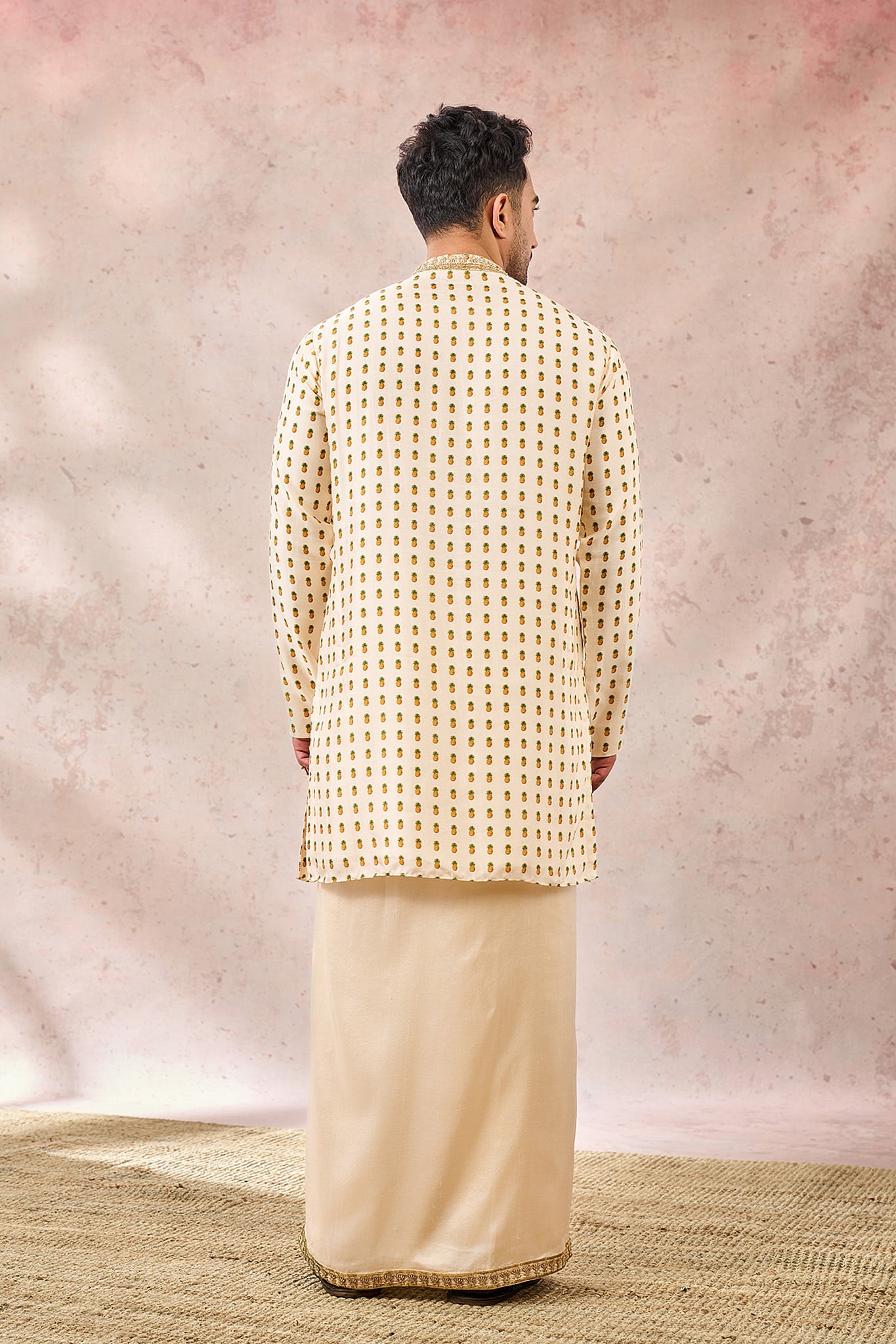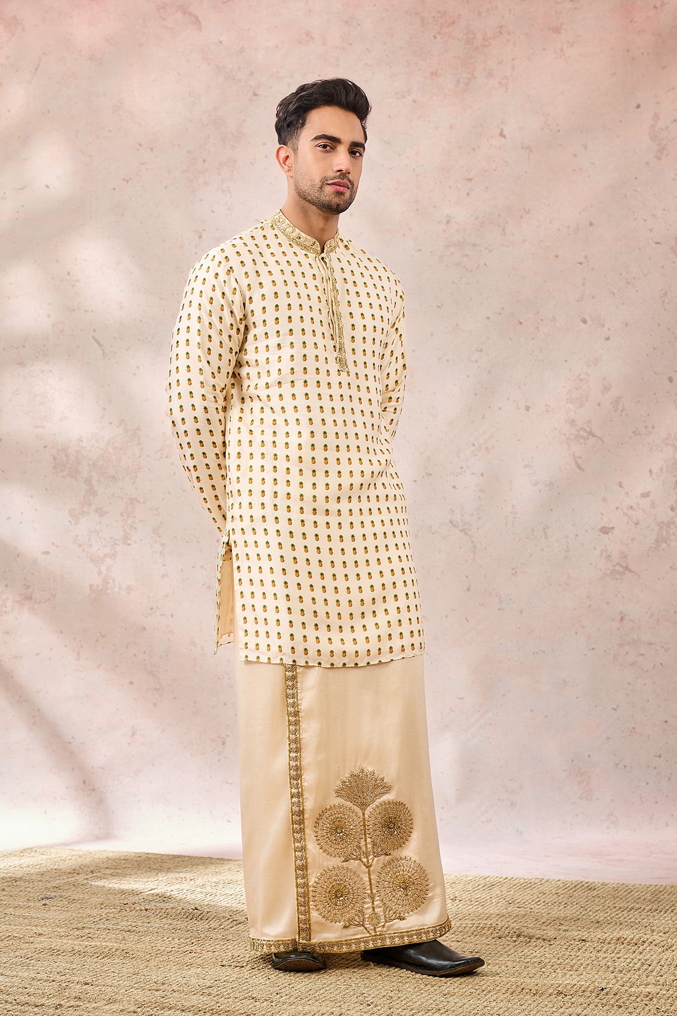 Fabric: Bandi- Dupion Silk | Kurta- Viscose Raw Sik | Pant- Dupion Silk | Veshti- Dupion Silk