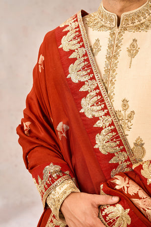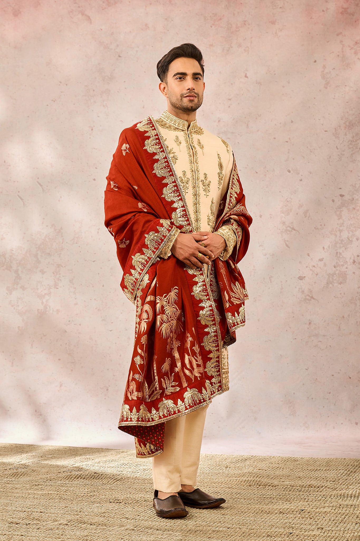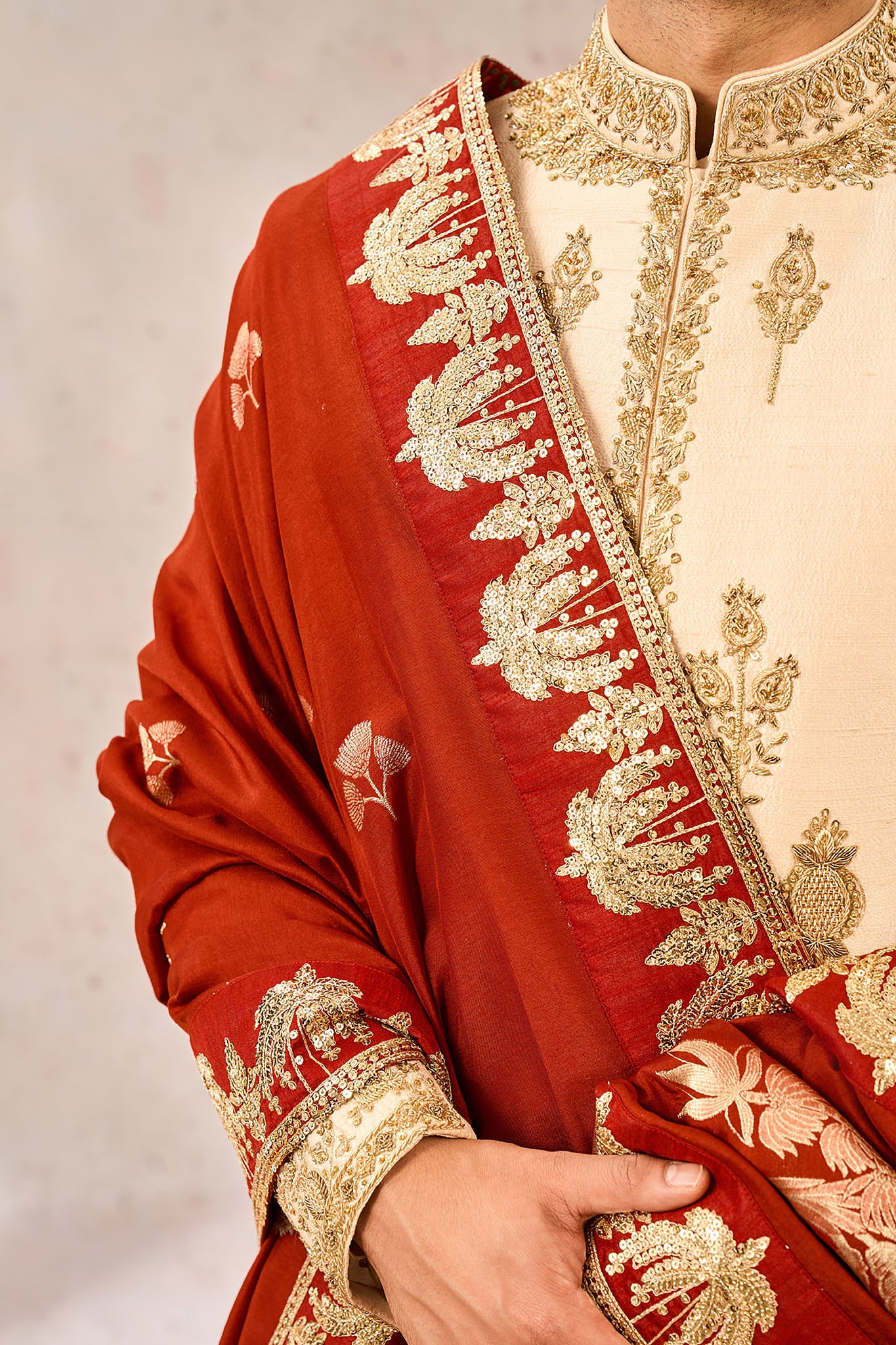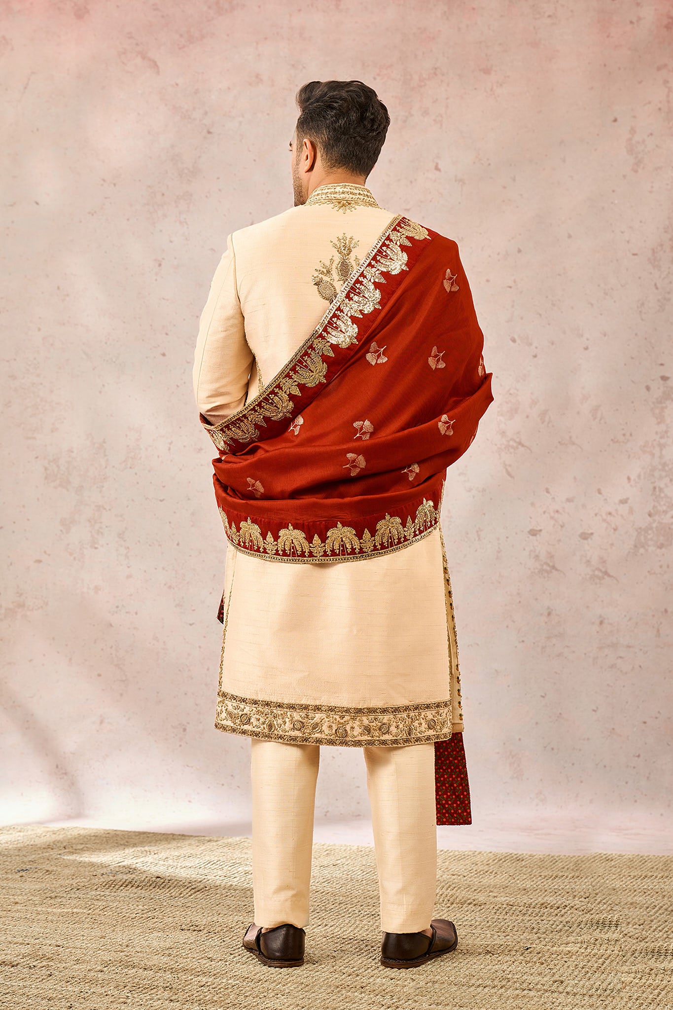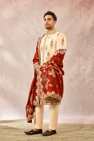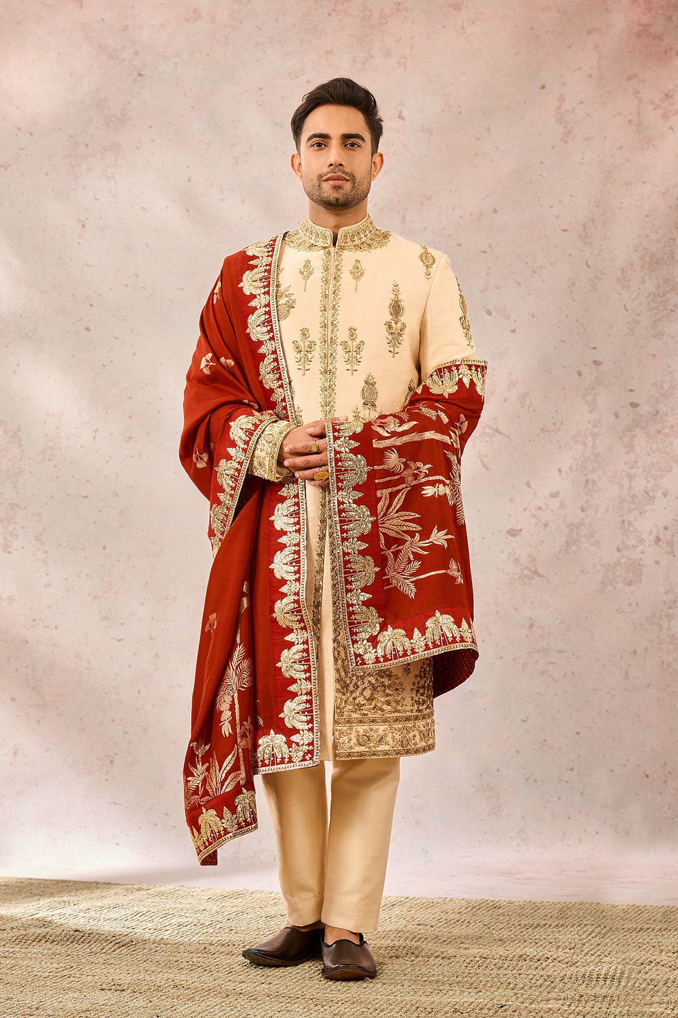 Fabric: Sherwani- Heavy Raw Silk | Kurta- Dupion | Pant- Heavy Raw Silk | Stole- Brocade