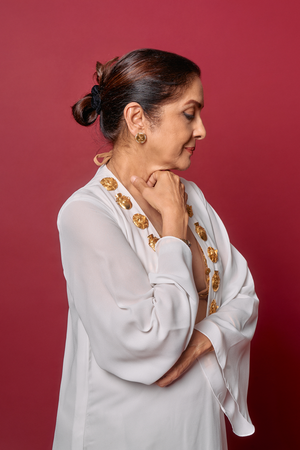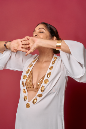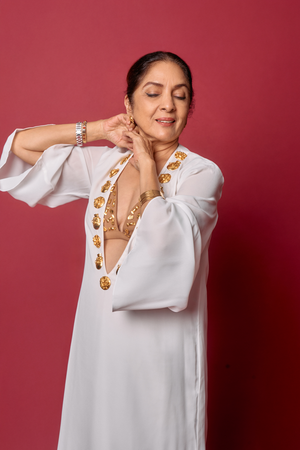 Styling: Style the kaftan with House of Masaba statement jewellery.