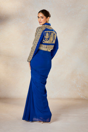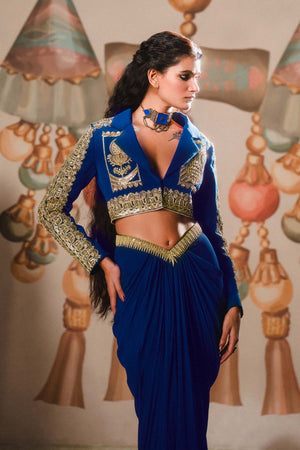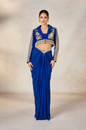 Fabric: Blazer- Heavy crepe | Boob Tube- Heavy crepe | Drape Skirt- Georgette