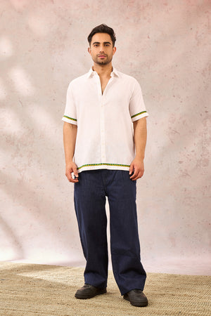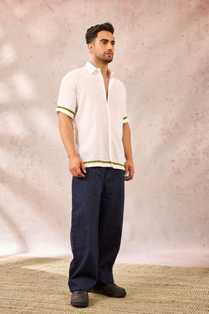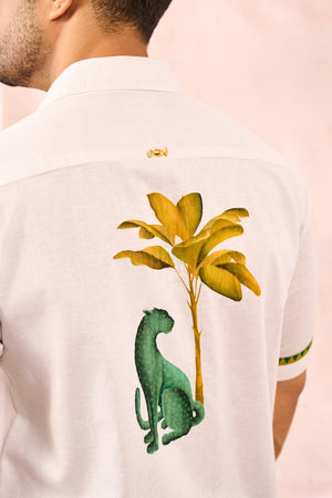 Details: Shirt- Shirt with digital print patch at the center back | Standcollar | Front placket | Hem and sleeves are adorned with printed border | Gold Toffee button attached to the side seam