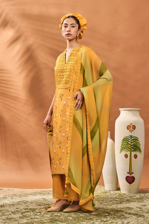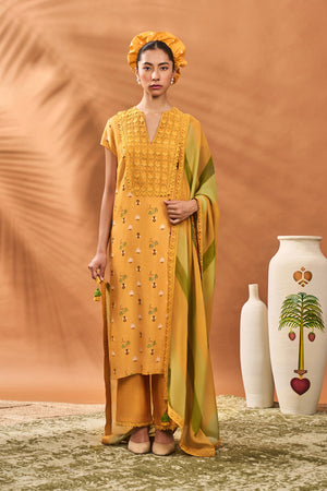 Yellow Spades Blossom Kurta Set