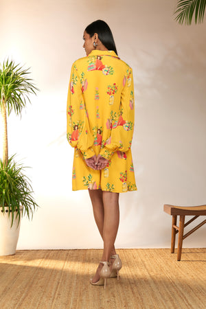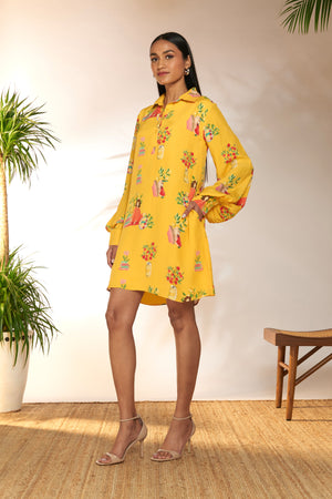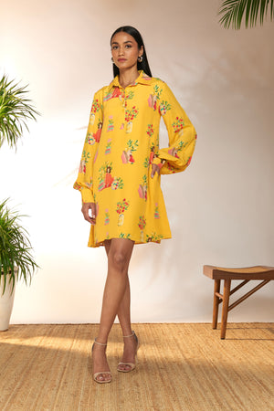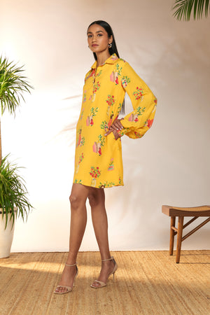 Details: Yellow Tangy Tango Collared Dress - Shirt collar with placket | Balloon sleeve with cuffs | Side seam pockets